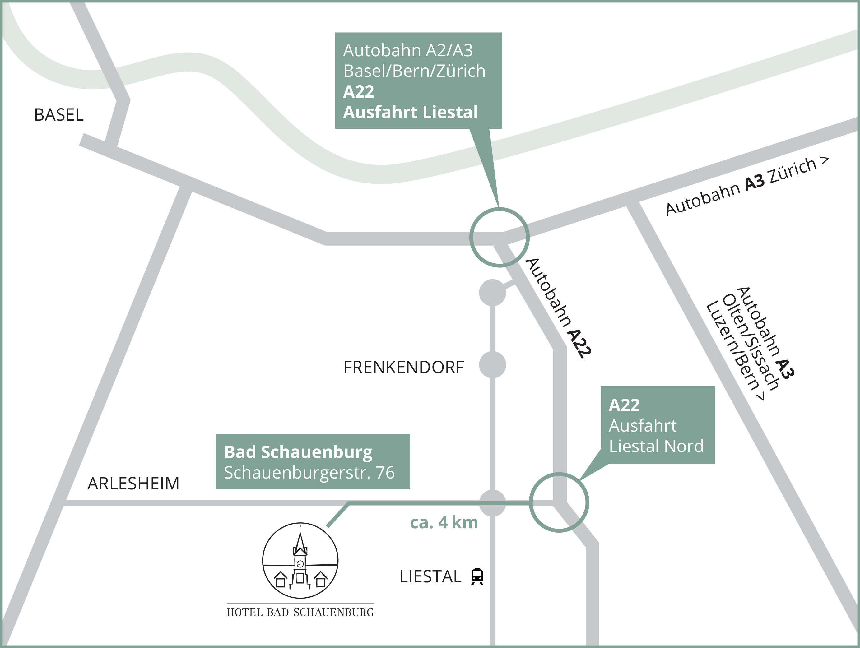FROM BASEL FREEWAY A2/A3 OR FROM ZURICH FREEWAY A3