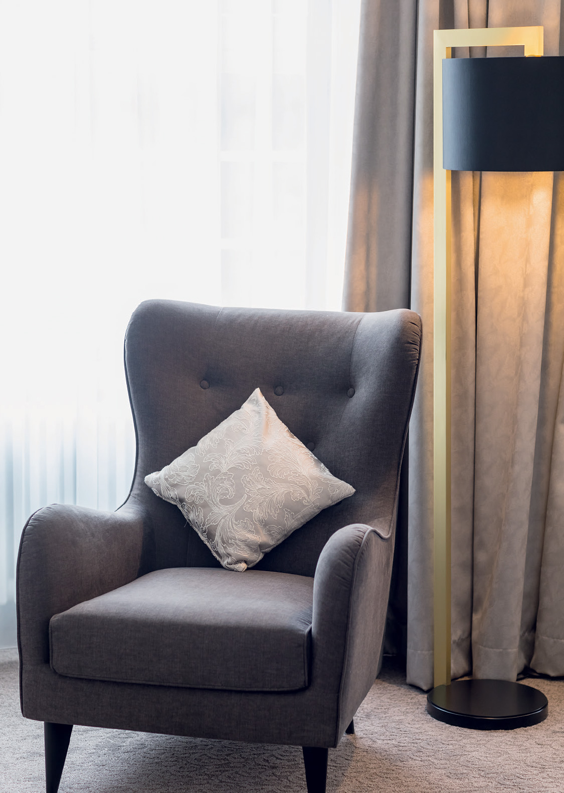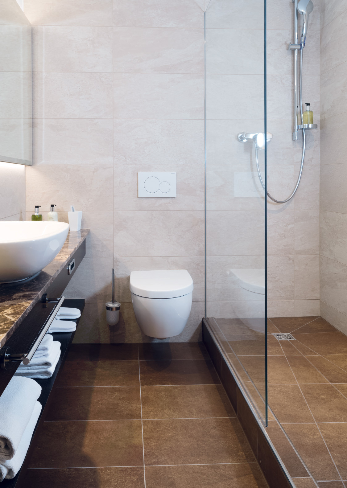 An average space of 20m² for a quiet and comfortable stay. Bedroom with luxury box spring bed in the format 160 x 200 cm. Modern walk-in shower with lavatory.